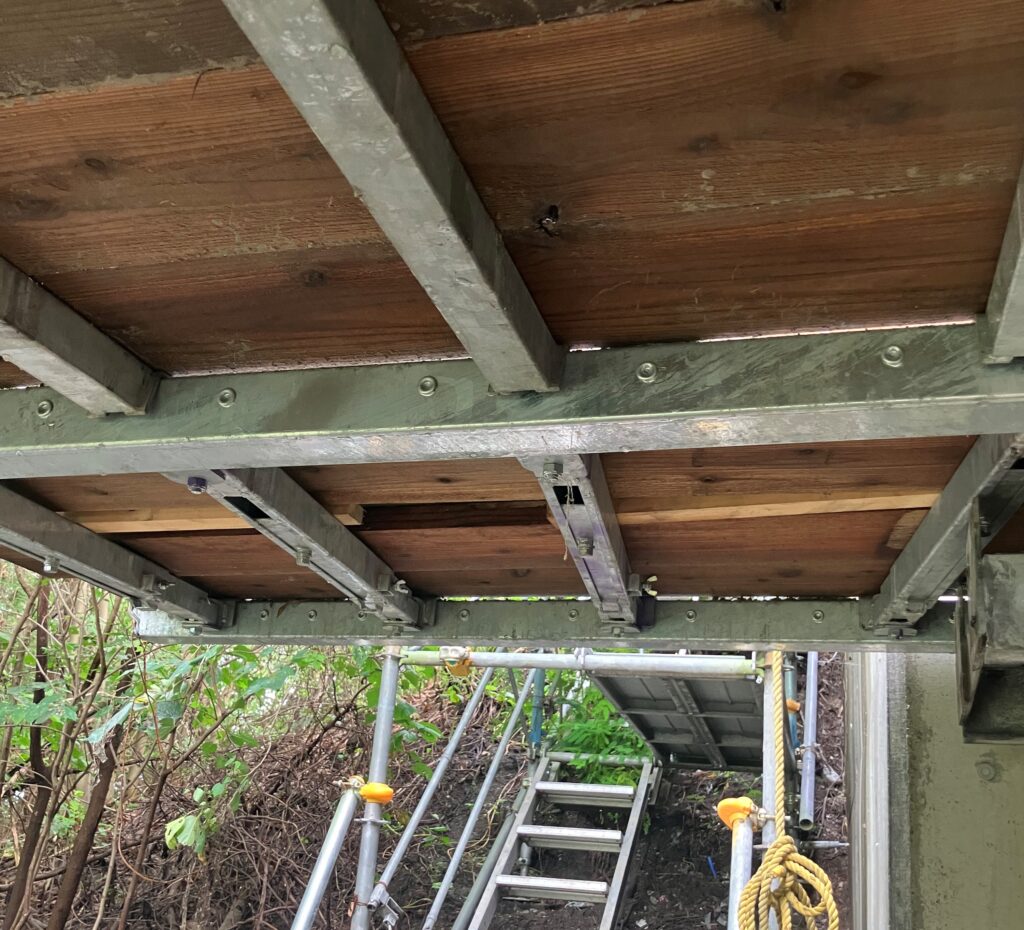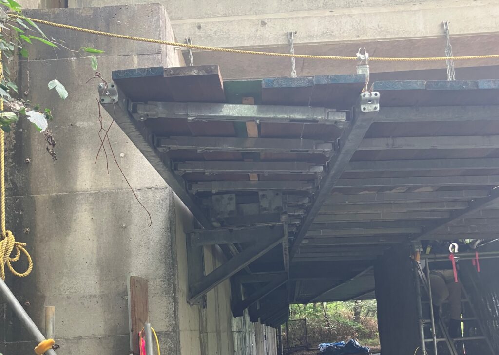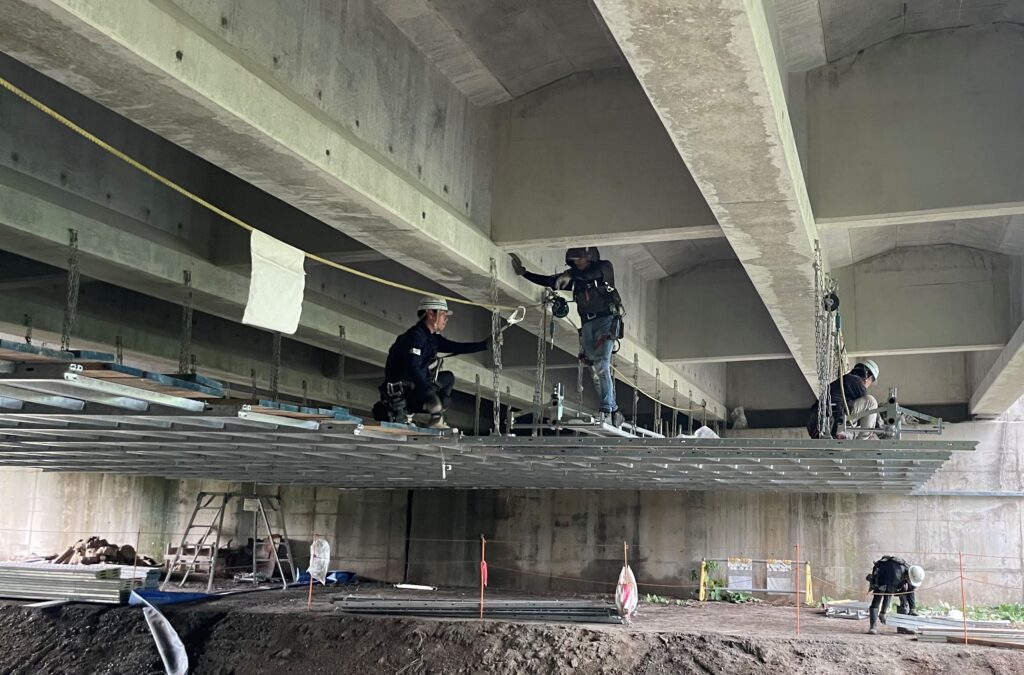 2025年8月27日に、床版取替工事の吊り棚足場(VMAX)の解体現場をパトロールしました。